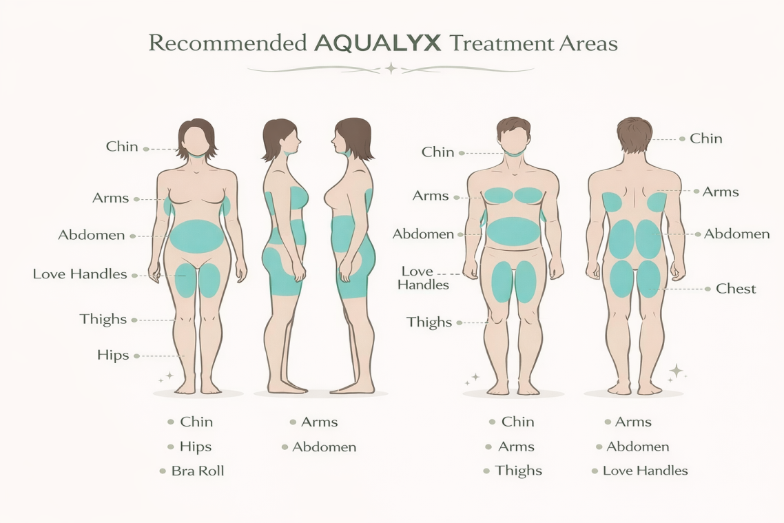 The deoxycholic acid permanently removes fat cells from the body, but it doesn’t stop them from coming back. It is important to pair Aqualyx treatment with a balanced diet and exercise to maintain results.