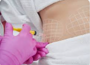 The area will be cleaned and numbing cream applied if required. The cream is wiped off, and a grid-like area will be marked out on the skin with a pen. Small injections will be administered into the fat layer of the skin which are generally minimally uncomfortable. Up to 10 small doses may be put into the fatty area under the chin, and for larger body parts, a large cannula will be placed in the area to disperse the treatment to minimise bruising, discomfort and swelling.